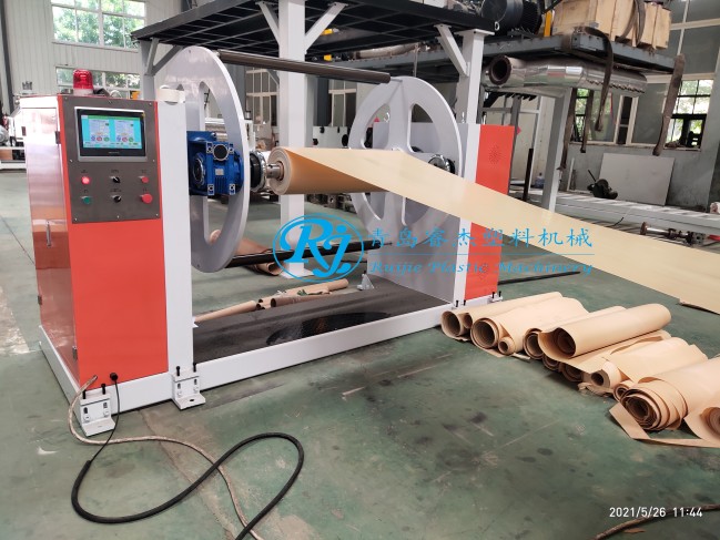 此設備是原料經自動真空上料機把原料輸送到擠出機,有擠出機加熱系統把原料融化到一定溫度通過模具成型。真空上料,平雙擠出機,溫度控制系統,換網器,計量泵,模具,三輥,模溫機,冷卻托架,廢邊切割,牽引機,裁斷機,收卷機。