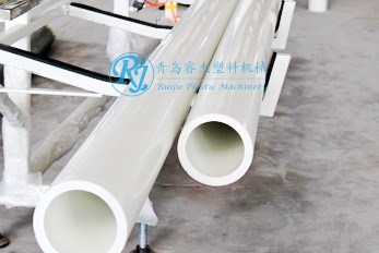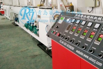 青島睿杰塑料機械有限公司生產PPR管材生產線,采用擠出工藝生產,管材主要用于室內供水,可承受壓力0.4-2.5MPa,采用管件熱融焊接,防腐防銹,是綠色環保的供水新產品,在100°高溫下不變形,不膨脹,是金屬管材的理想替代品。PPR管材生產流程:原料+色母料→混合→真空上料→原料干燥→單螺桿擠出機→色線擠出機→螺旋式模具→定徑套→噴淋真空定型箱→噴淋冷卻水箱→噴碼機→履帶牽引機→成品檢測包裝